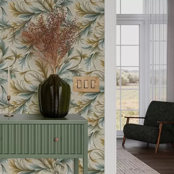 Tapety Objętościowe liście w pastelowych odcieniach zieleni i beżu Nr. a00674