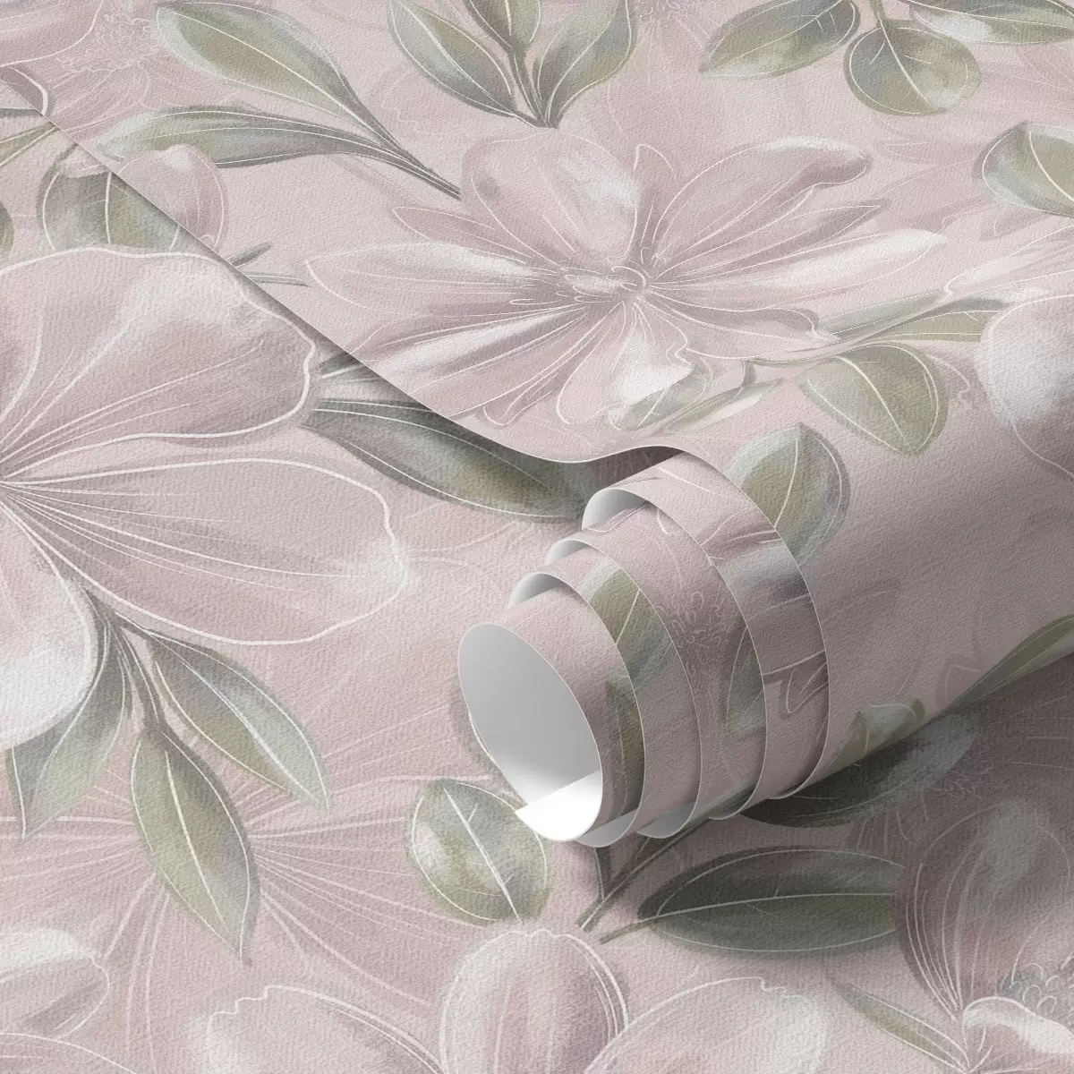 Tapety Różowe kwiaty z delikatnymi liśćmi na delikatnym tle Nr. a00675