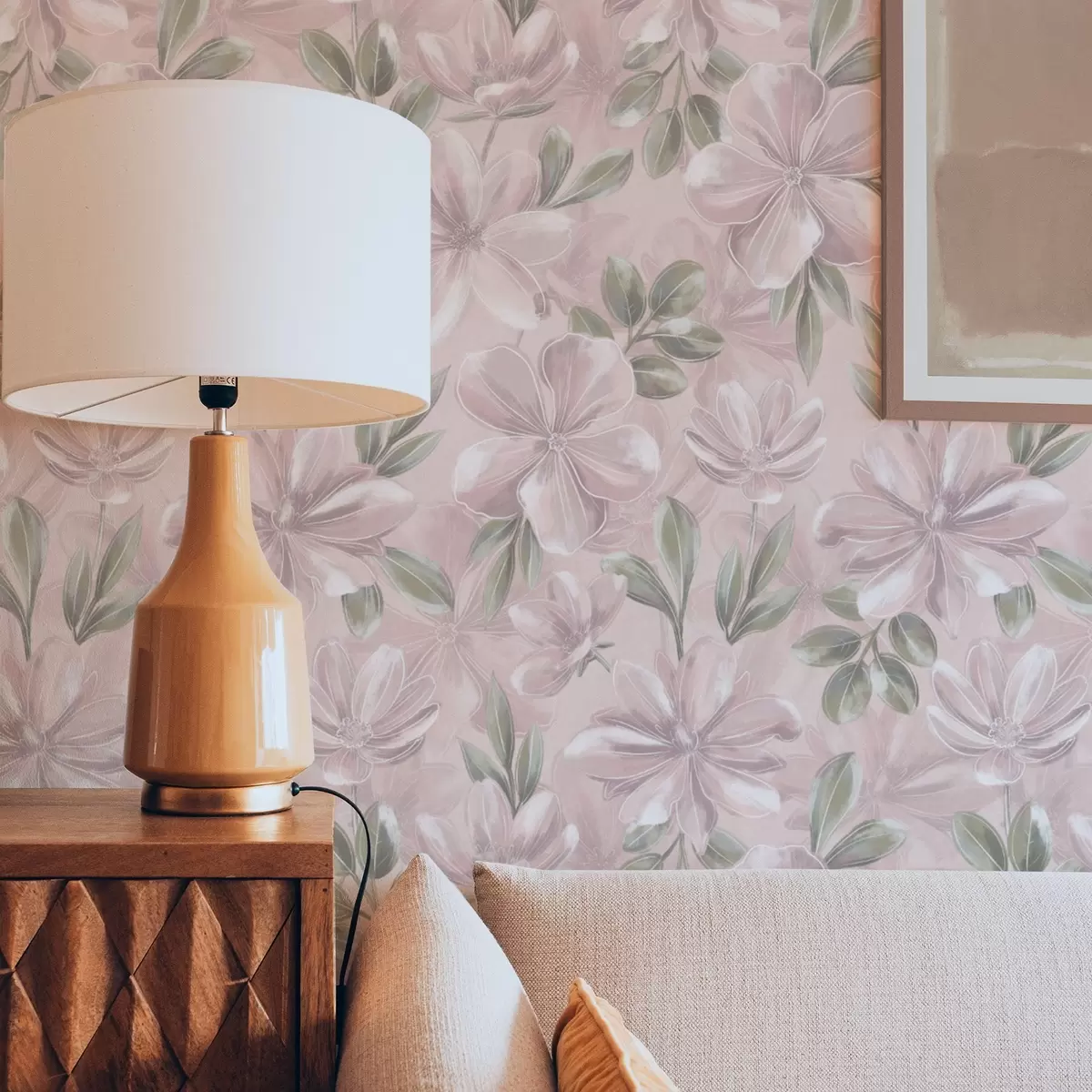Tapety Różowe kwiaty z delikatnymi liśćmi na delikatnym tle Nr. a00675