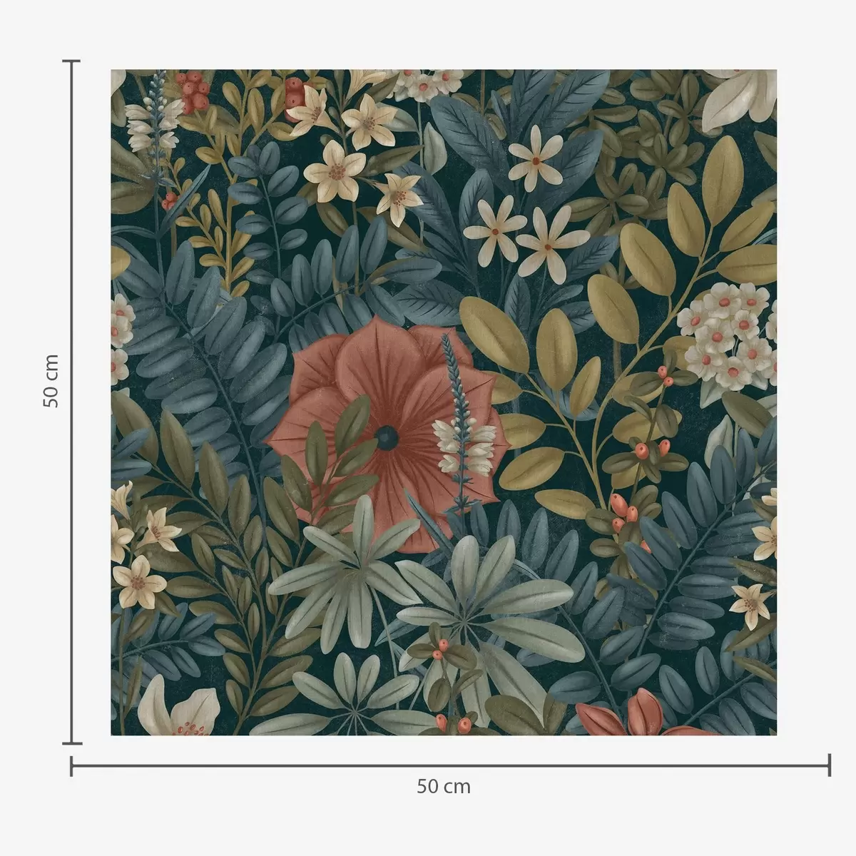 Tapety Ciemne tło z gęstymi kwiatami i liśćmi w ciepłych odcieniach Nr. a00678