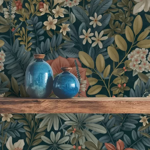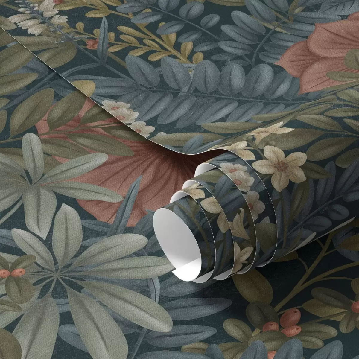 Tapety Ciemne tło z gęstymi kwiatami i liśćmi w ciepłych odcieniach Nr. a00678