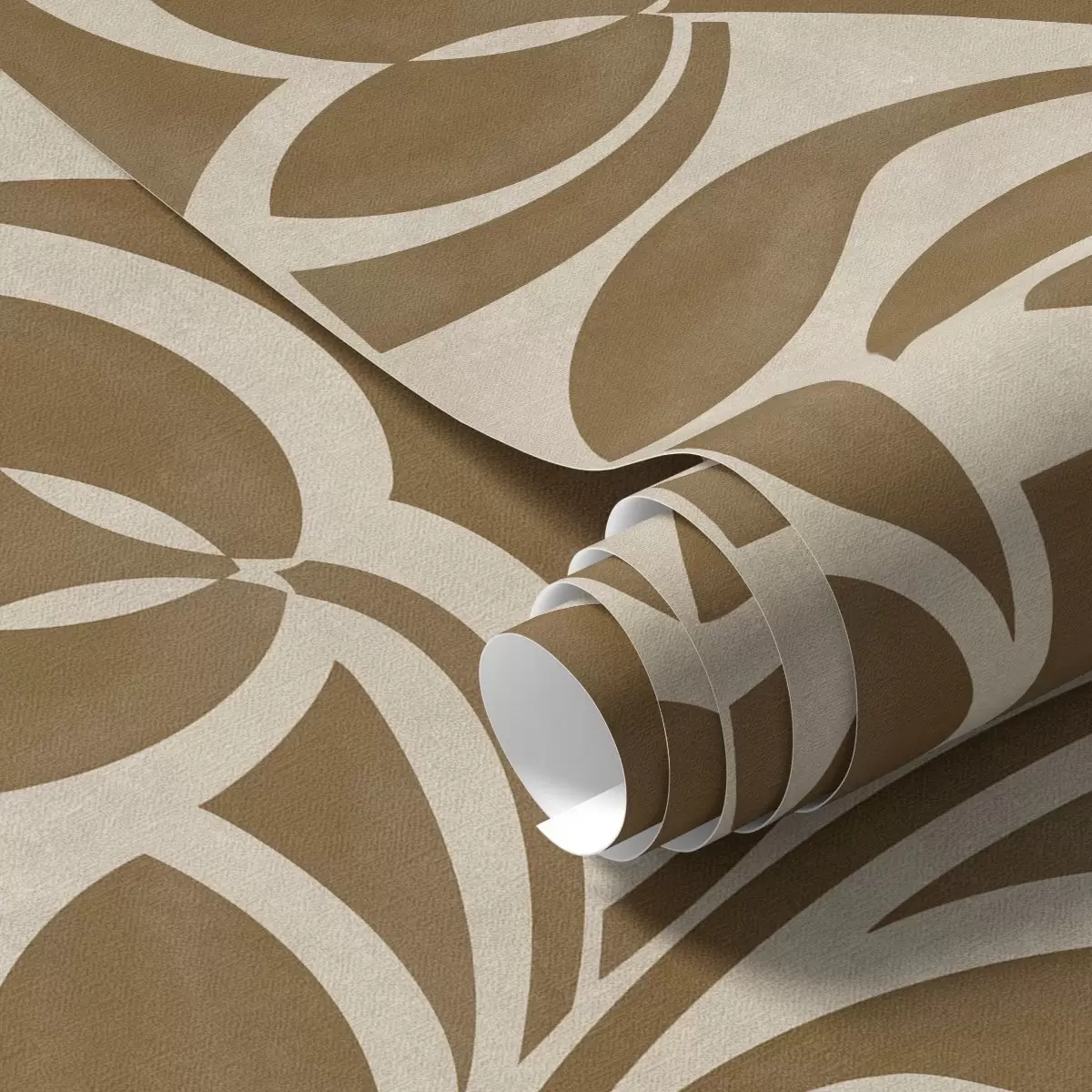 Tapety Geometryczne sylwetki liści, karmelowo-brązowe na beżowym tle Nr. a00679