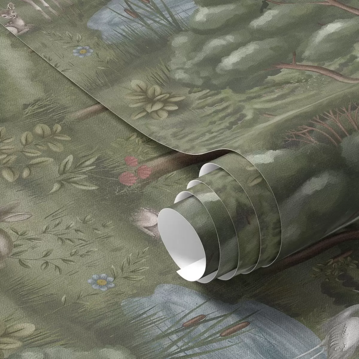 Tapety Leśna polana z jelonkami, królikami i czaplami Nr. a00680