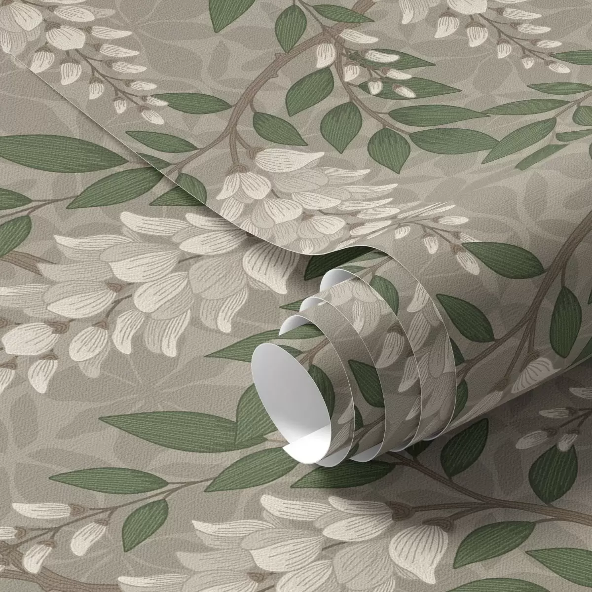 Tapety Jasna glicynia na szaro-oliwkowym tle, kaskadowe kiście Nr. a00694