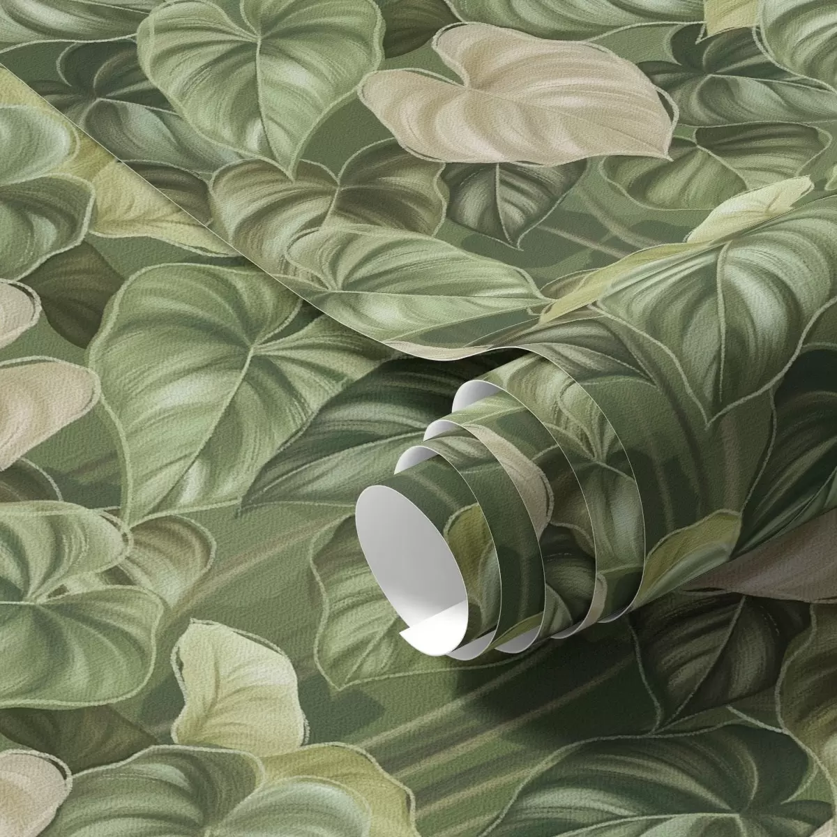 Tapety Bujne liście filodendrona w odcieniach zieleni i kości słoniowej Nr. a00695