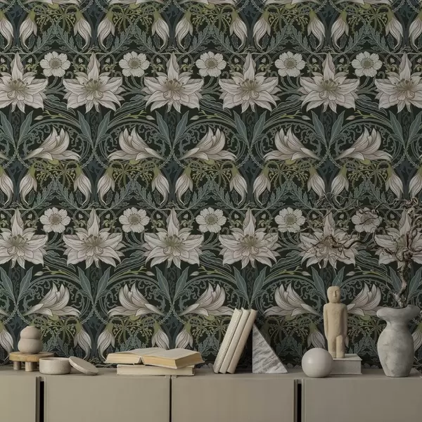 Tapeta Kompozycja w stylu secesyjnym z liliami na ciemnym tle a00696