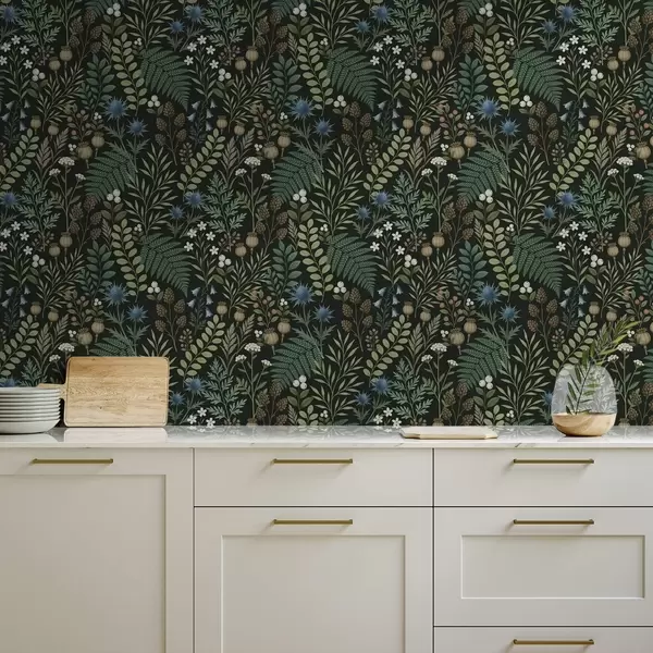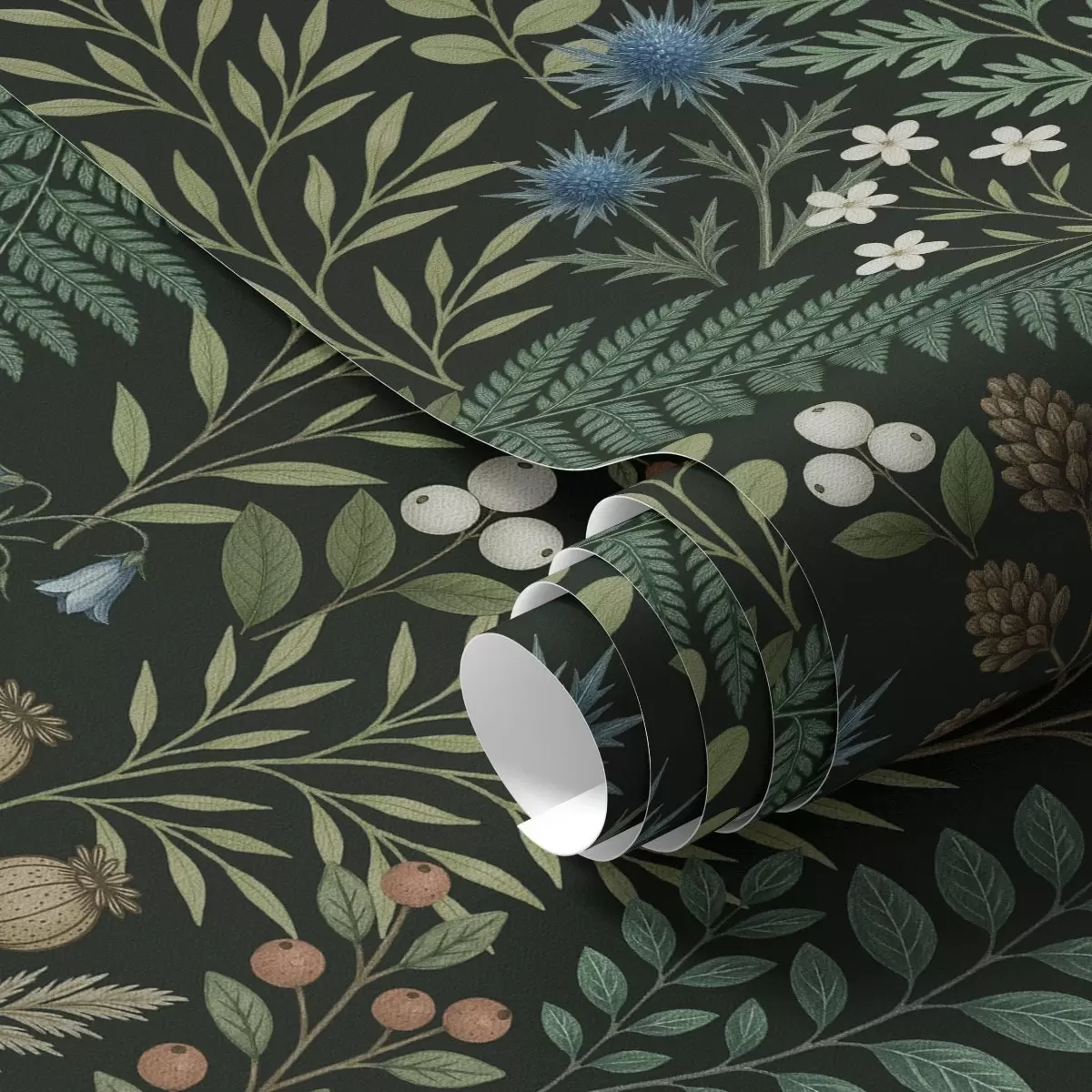 Tapety Trawy polne, jagody i nasiona na ciemnym tle Nr. a00706