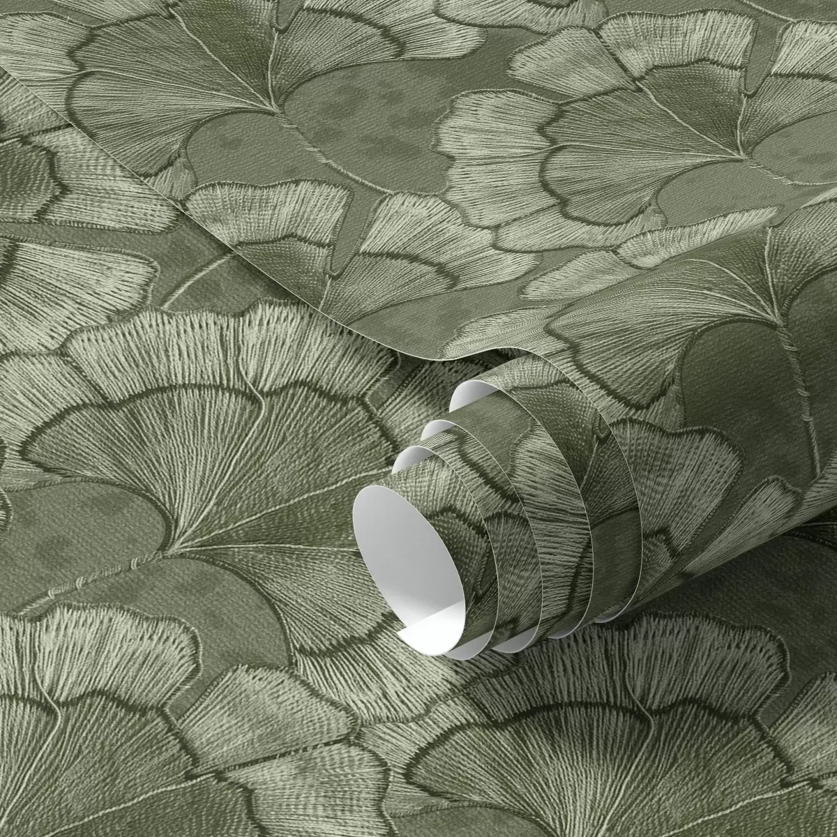 Tapety Graficzny wzór z miłorzębem w chłodnej zielonej palecie barw Nr. a00709
