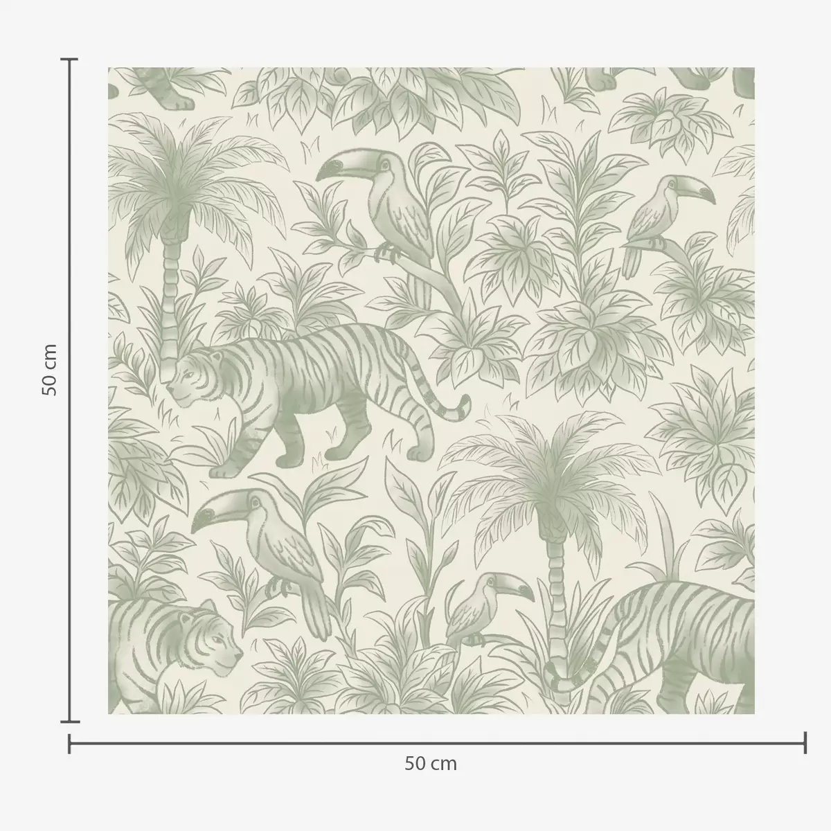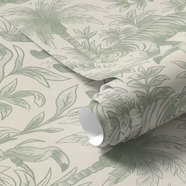 Tapety Tygrysy i tropikalne ptaki wśród palm na jasnym tle Nr. a00711