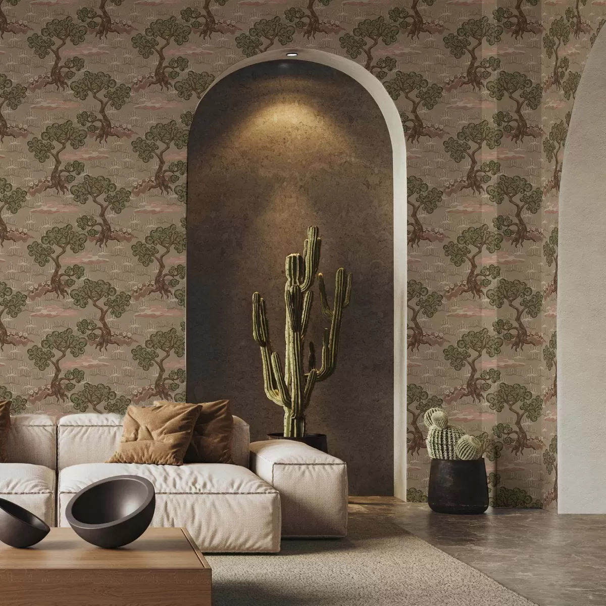 Tapety Wschodni krajobraz z fantazyjnymi drzewami na piaszczystym tle Nr. a00715