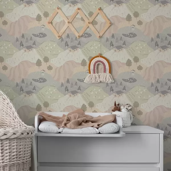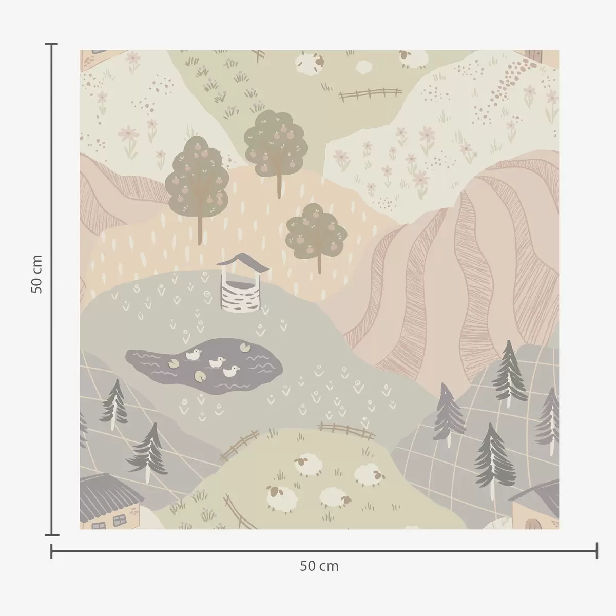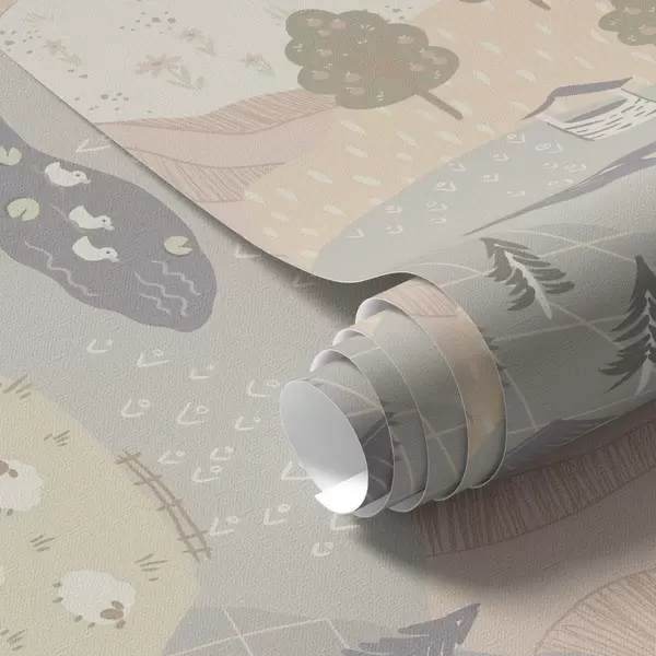 Tapety Bajkowa wieś z drzewami, gęsiami i owcami Nr. a00728