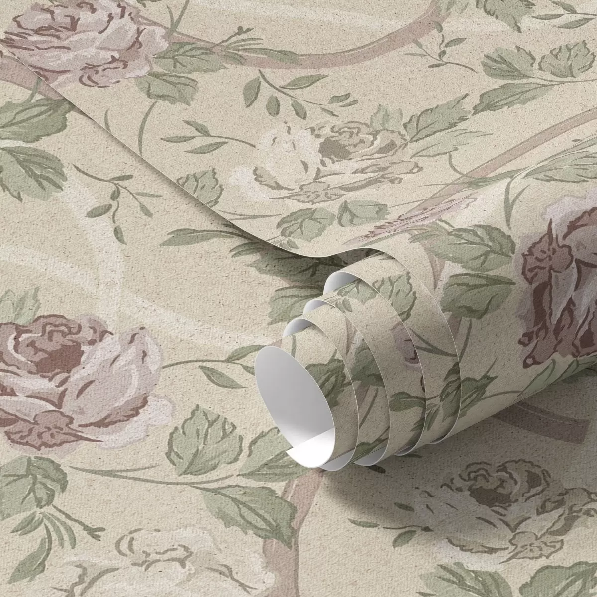 Tapety Róże z zielonymi liśćmi na ciepłym beżowym tle Nr. a00729