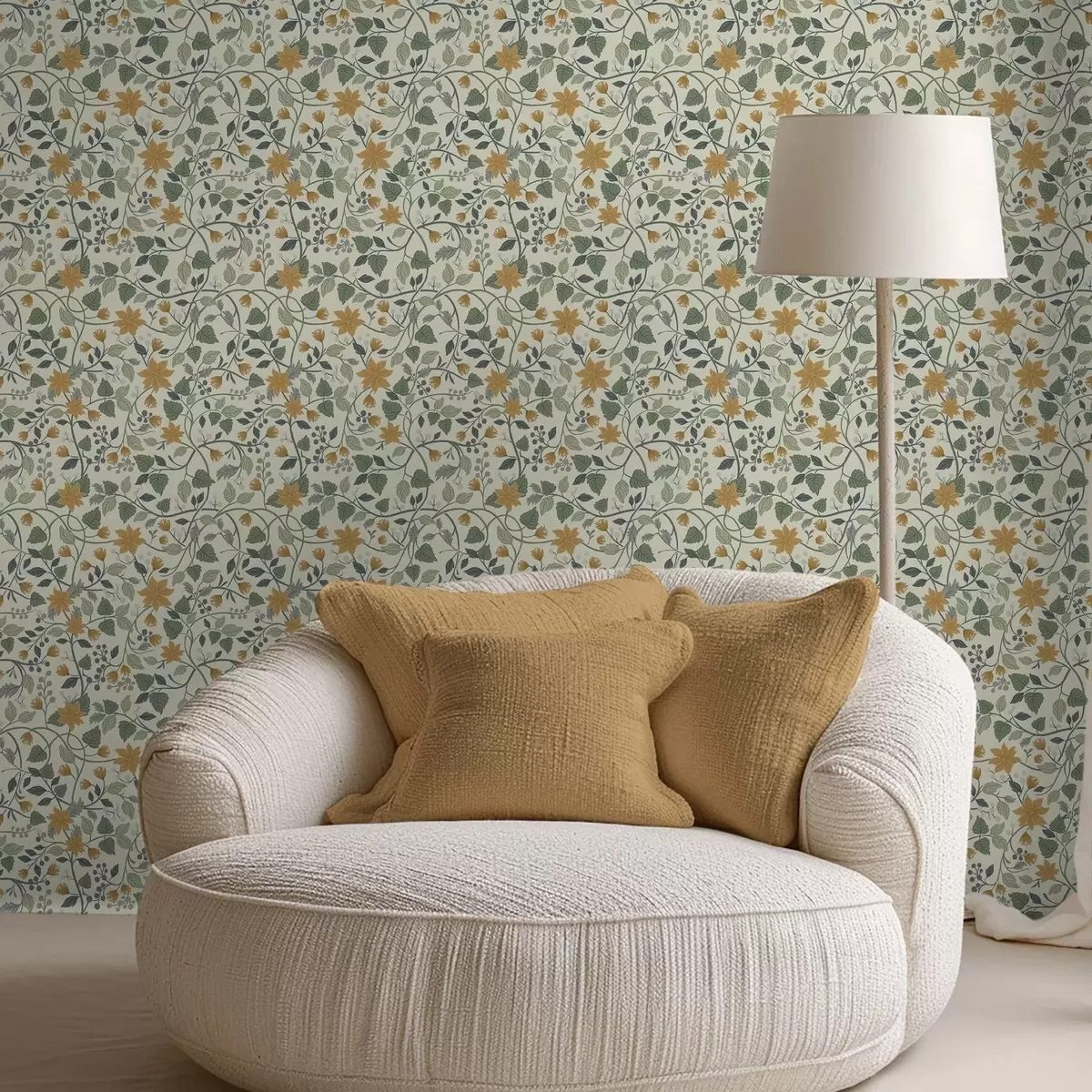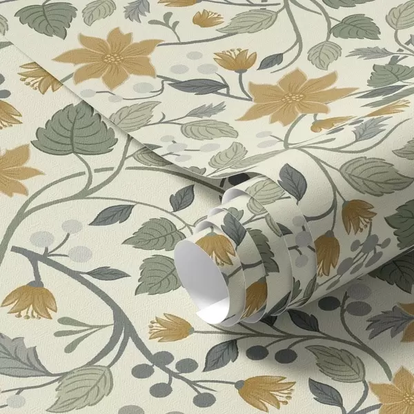 Tapety Pnące gałęzie kwiatowe z żółtymi kwiatami i jagodami Nr. a00750