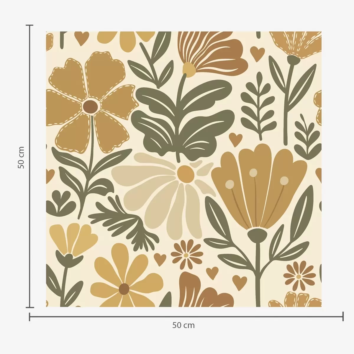 Tapety Stylizowane kwiaty w ciepłych odcieniach z sercami Nr. a00752