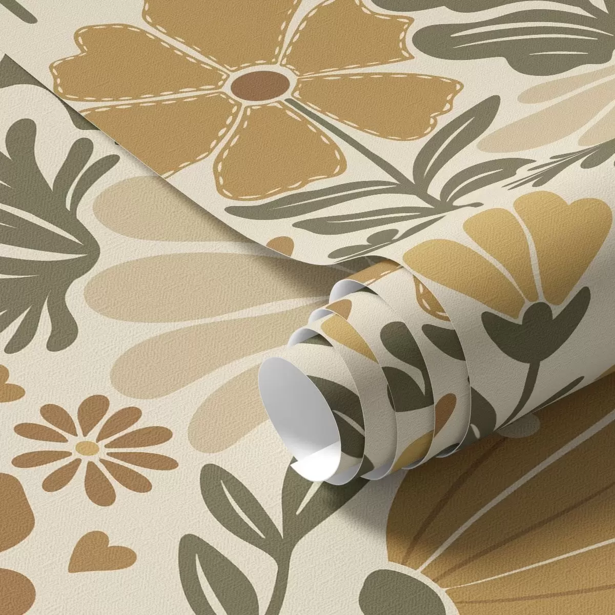 Tapety Stylizowane kwiaty w ciepłych odcieniach z sercami Nr. a00752