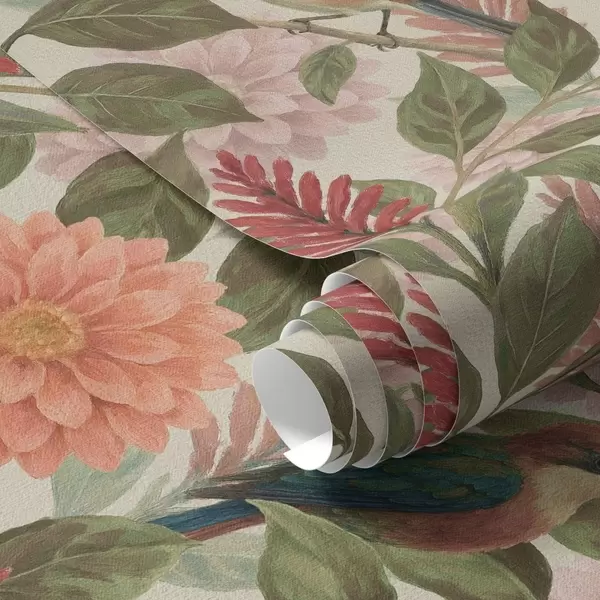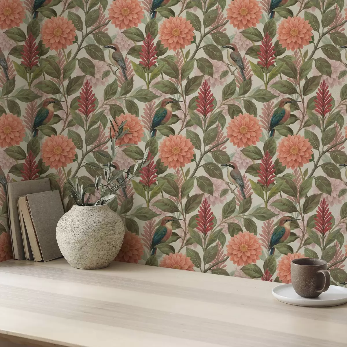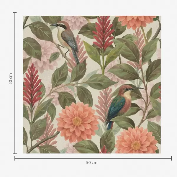 Tapety Ptaki wśród kwiatów i liści w ciepłych barwach Nr. a00753