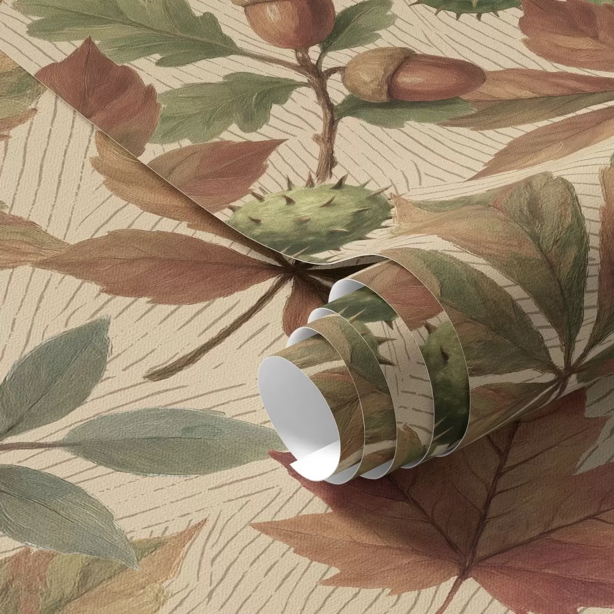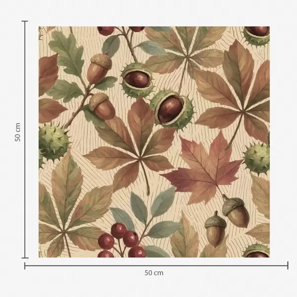Tapety Jesienne liście, żołędzie i jagody na beżowym tle Nr. a00754
