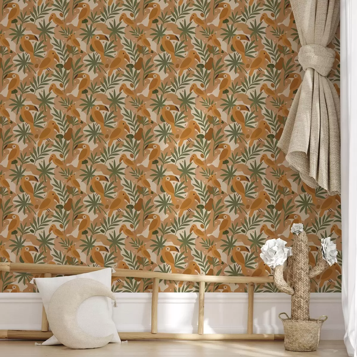 Tapety Stylizowane tukany wśród liści palmowych Nr. a00762