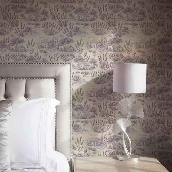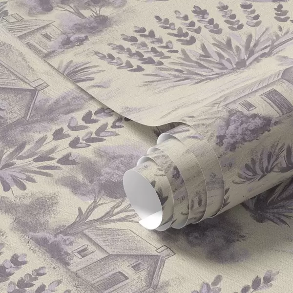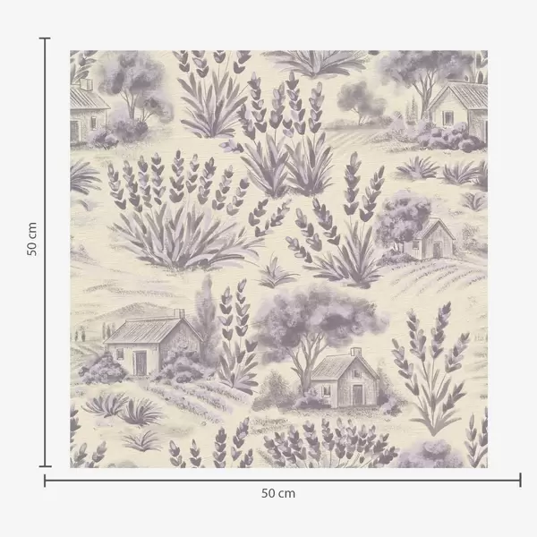 Tapety Pola lawendy i domy w pastelowych kolorach Nr. a00765