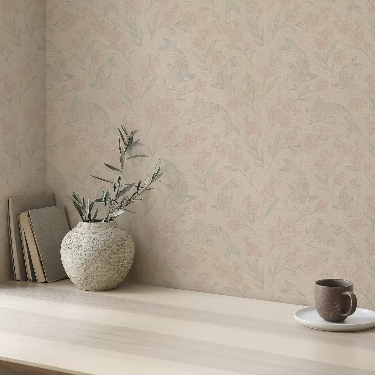 Tapety Karpie wśród kwiatów w delikatnych odcieniach beżowo-różowych Nr. a00766