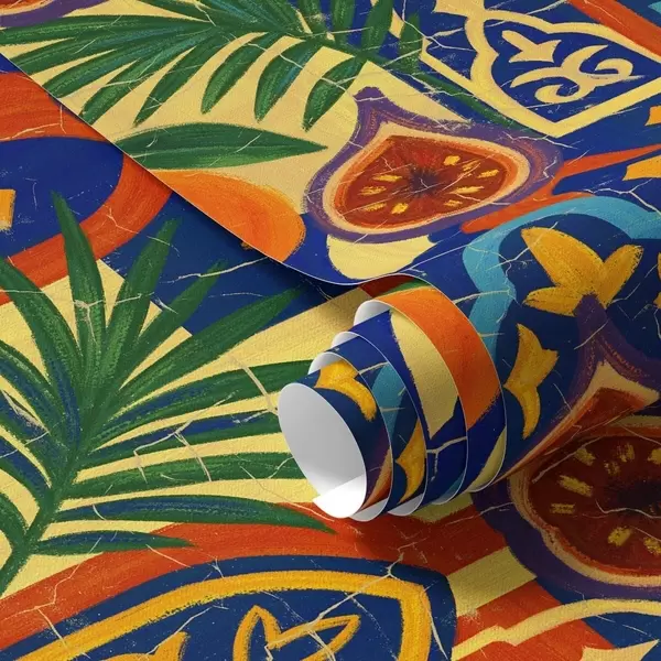 Tapety Jasne pomarańcze, liście palmowe i marokańskie łuki Nr. a00767