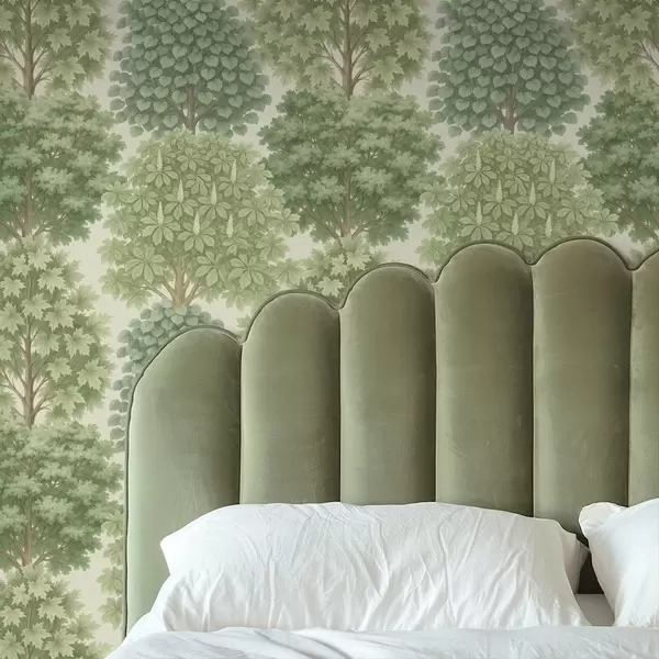 Tapety Ogród drzew w delikatnych odcieniach zieleni na jasnym tle Nr. a00775