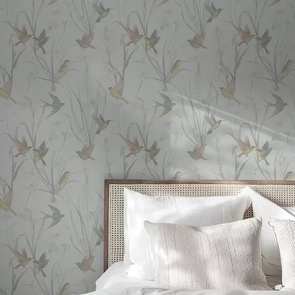 Tapety Ptaki wśród traw łąkowych na jasnoszarym tle Nr. a00776v1