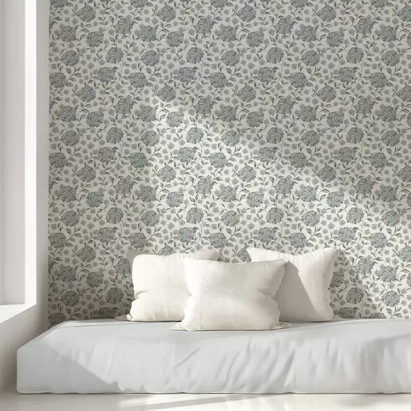 Tapety Kwitnące krzewy i liście w szaro-niebieskiej palecie barw Nr. a00778