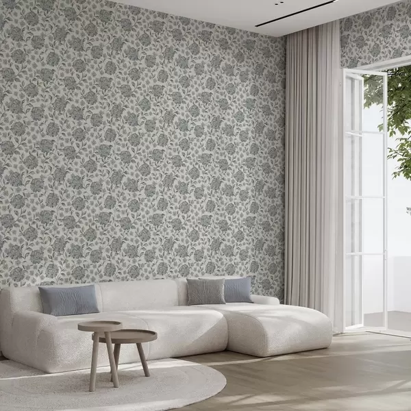 Tapety Kwitnące krzewy i liście w szaro-niebieskiej palecie barw Nr. a00778