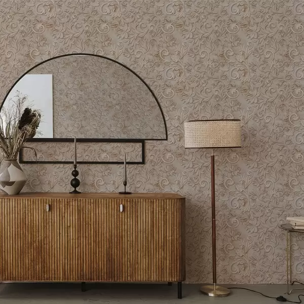 Tapety Kamienna płaskorzeźba z kwiatowymi ornamentami, vintage beż Nr. a00784
