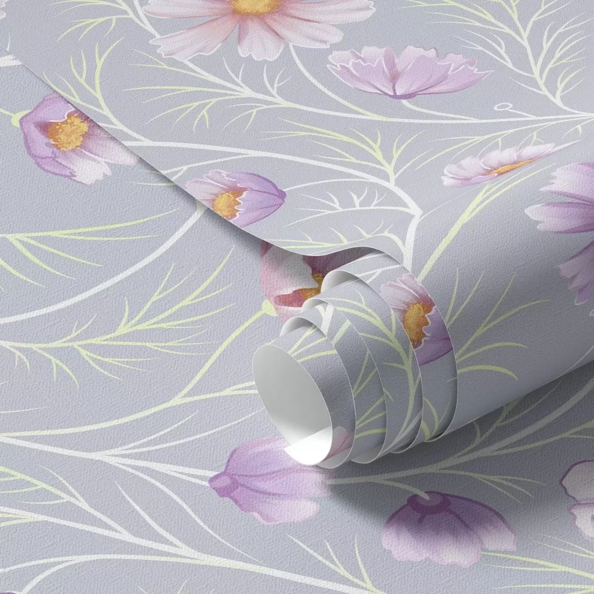 Tapety Różowe kosmosy i smukłe łodygi na szarym tle Nr. a00791