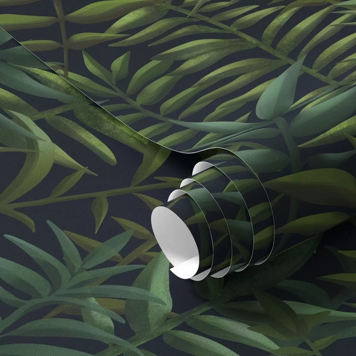 Tapety Ciemne tropikalne liście na ciemnym tle Nr. a00794