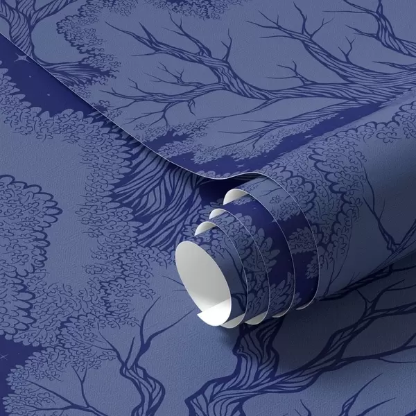 Tapety Sylwetki drzew pod rozgwieżdżonym niebem w odcieniach niebieskiego Nr. a00798