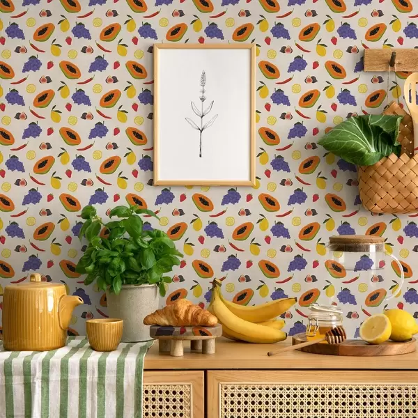 Tapety Papaja, winogrona i cytryny — jasna mieszanka owoców Nr. a00803