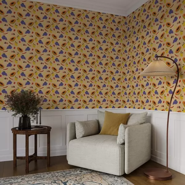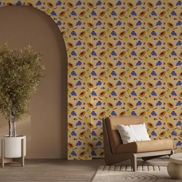 Tapety Papaja, cytrusy i jagody na bogatym, ciepłym tle Nr. a00803v1