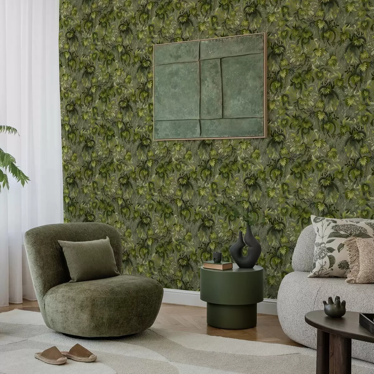 Tapety Gęste zielone liście na szaro-zielonym tle Nr. a00805v1