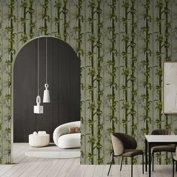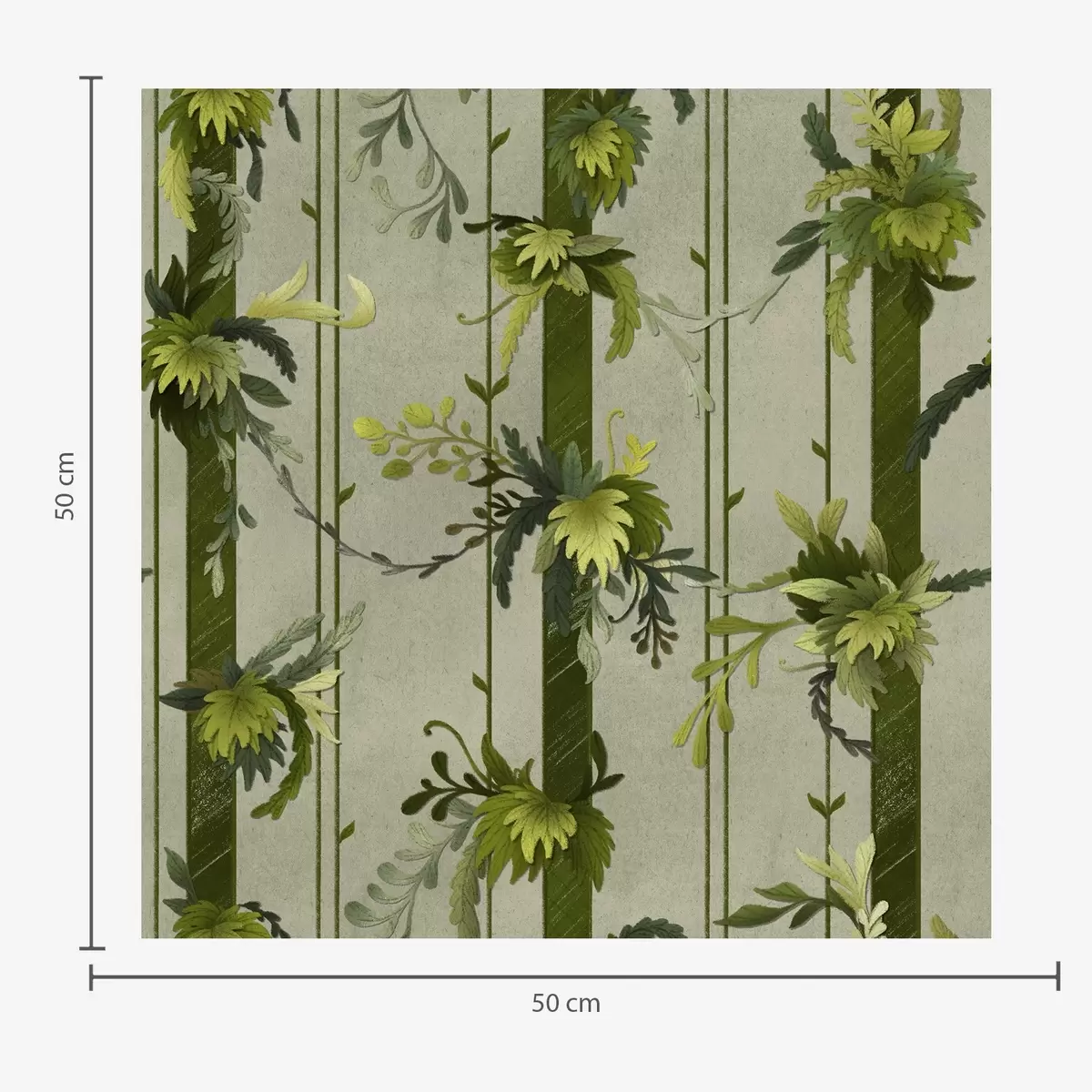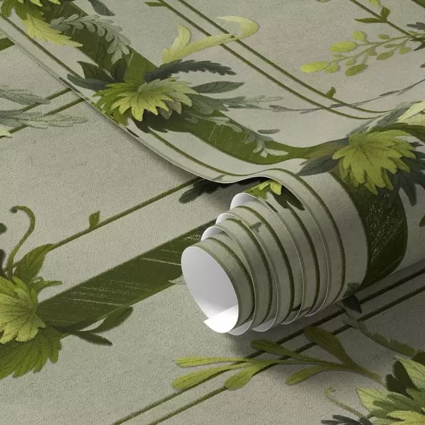 Tapety Zielone liście w pionowe paski na szarym tle Nr. a00807v1