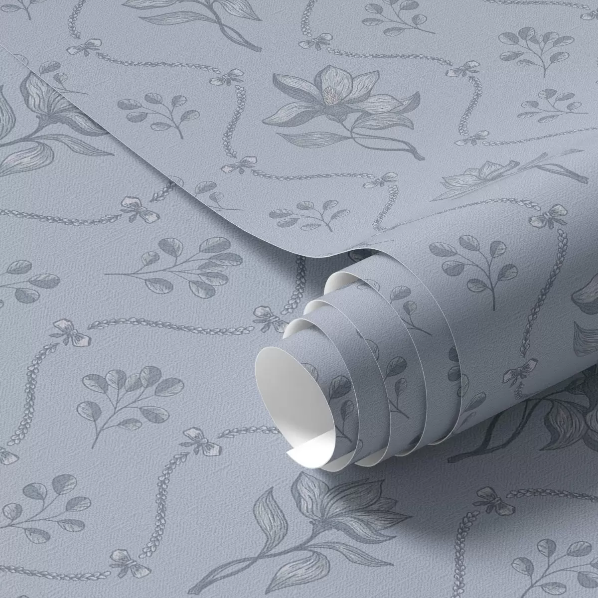Tapety Małe kwiaty i wstążki w szaro-niebieskiej palecie kolorów Nr. a00808v2