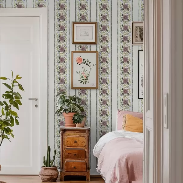 Tapety Pionowe kwiatowe paski w odcieniach liliowo-niebieskich Nr. a00809