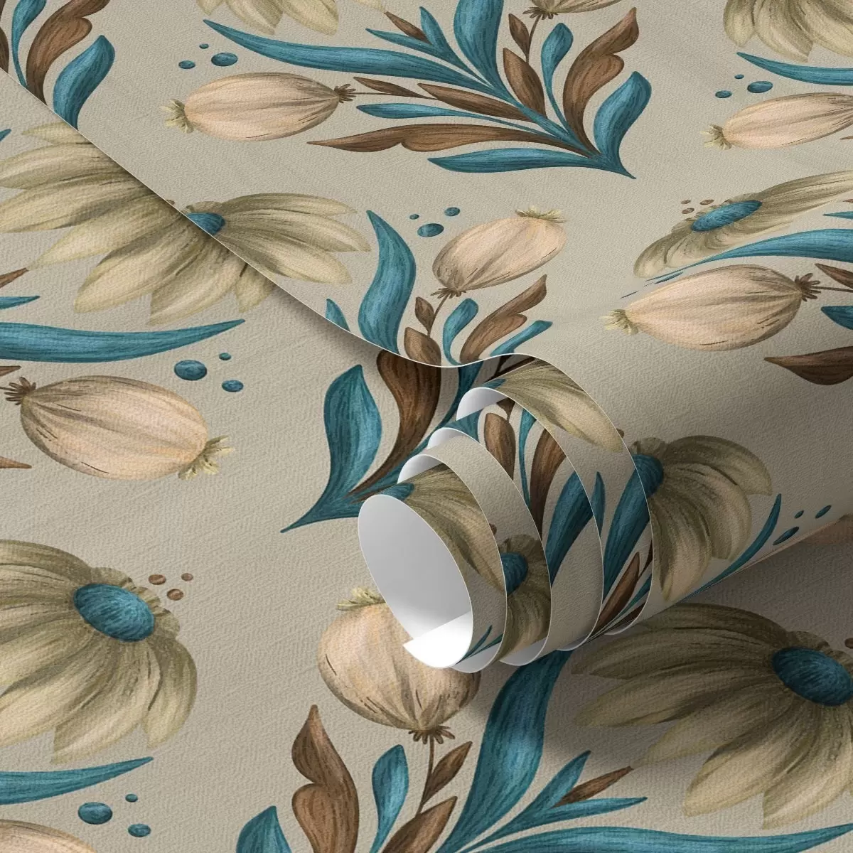 Tapety Symetryczny ornament kwiatowy w ciepłych odcieniach Nr. a00812