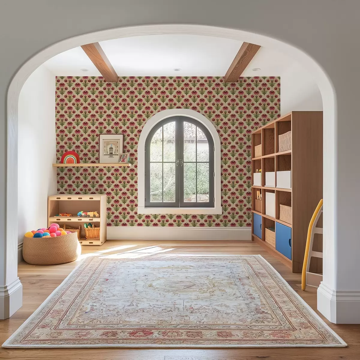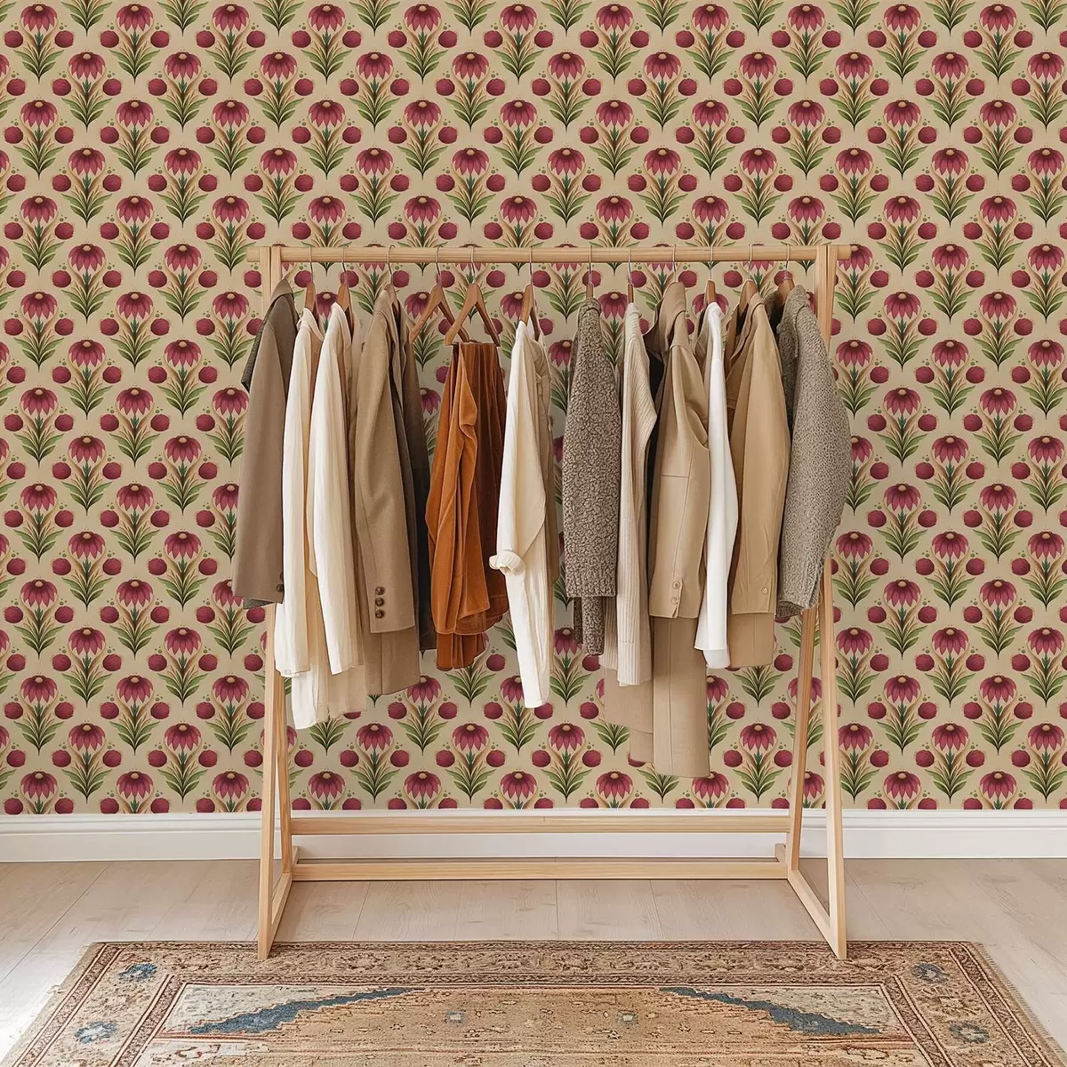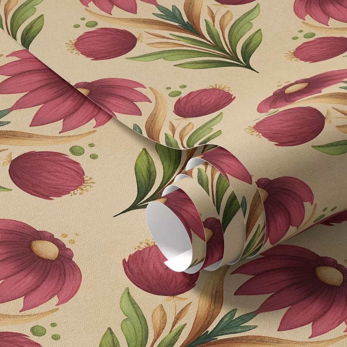 Tapety Symetryczny ornament kwiatowy na ciepłym beżowym tle Nr. a00812v6
