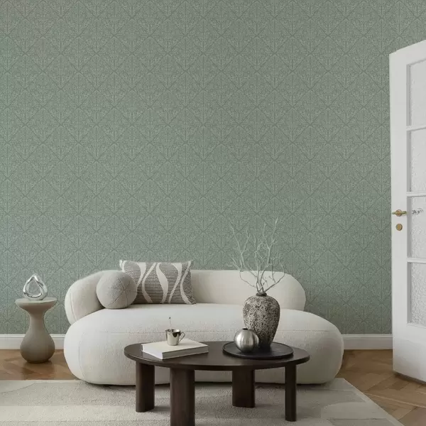 Tapety Botaniczny adamaszek na miętowo-oliwkowym tle Nr. a00815