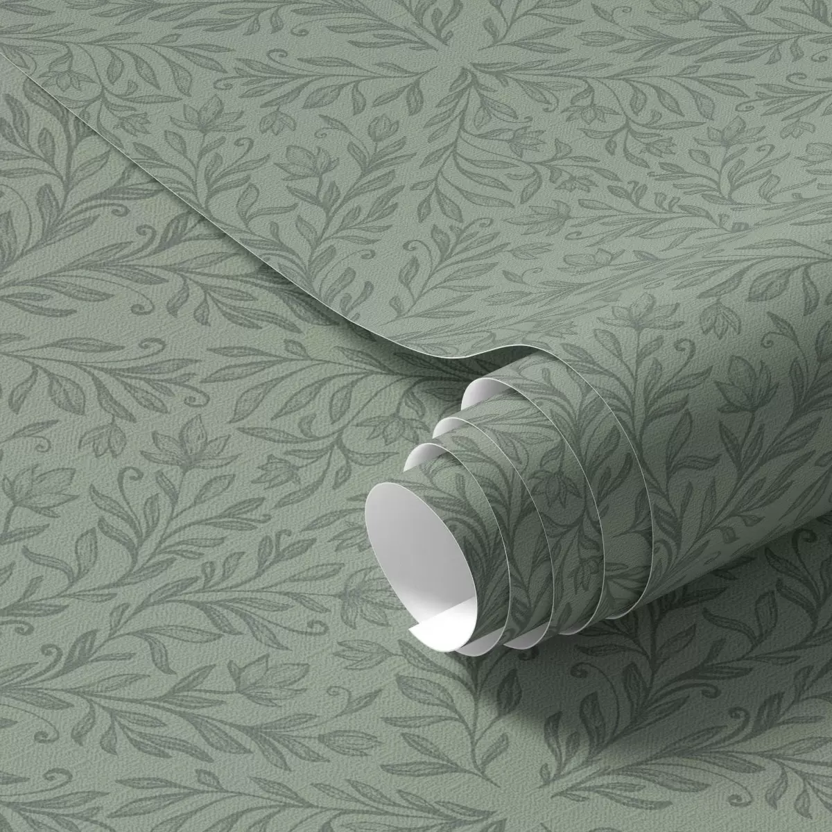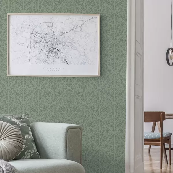 Tapety Delikatny botaniczny adamaszek w stonowanej zieleni Nr. a00815v1