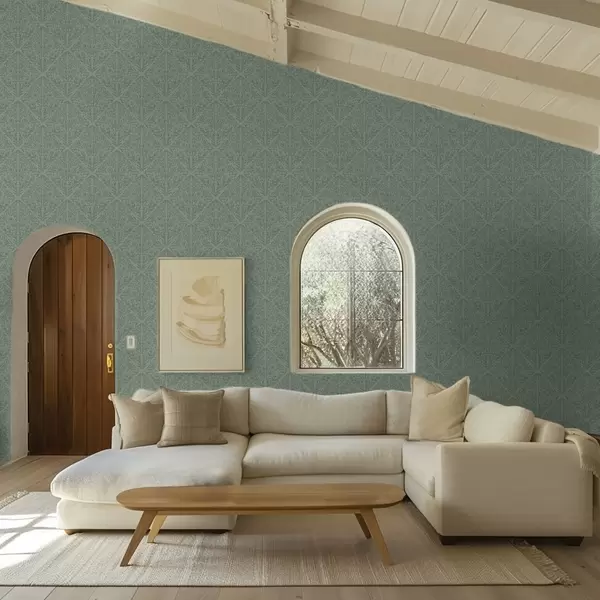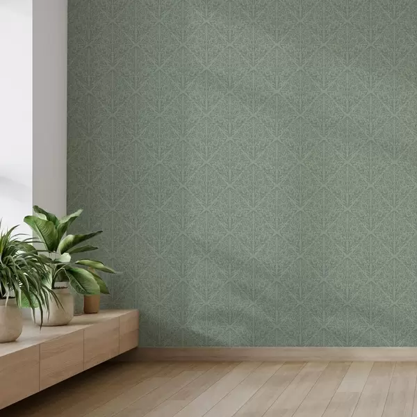 Tapety Delikatny botaniczny adamaszek w stonowanej zieleni Nr. a00815v1