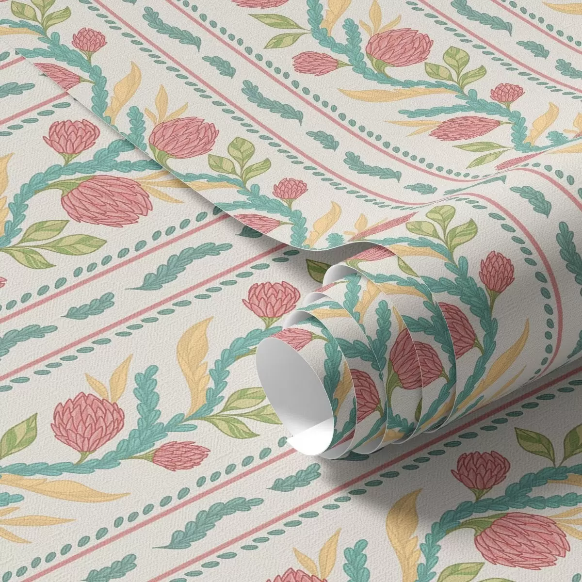 Tapety Paski z koralowymi pączkami na jasnokremowym tle Nr. a00816v1