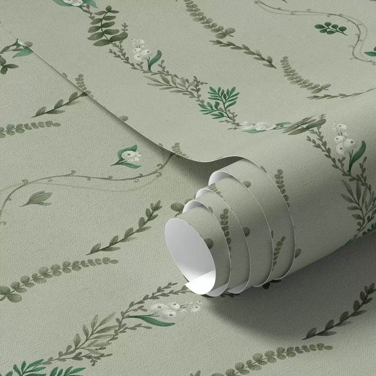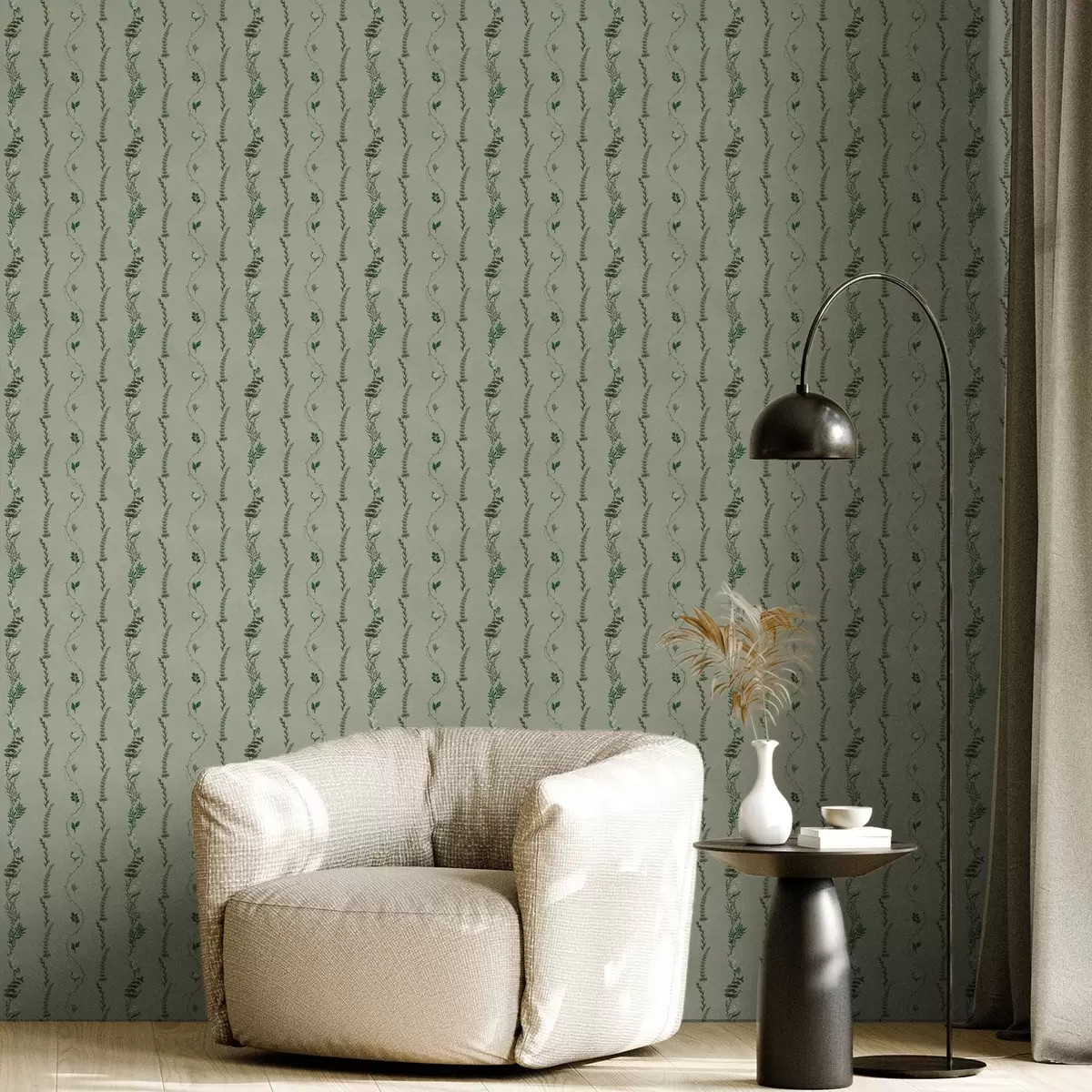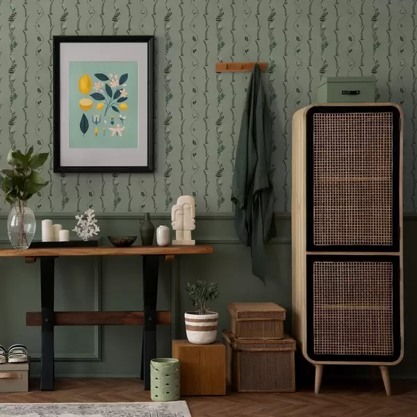 Tapety Pionowe pnącza i gałązki na stonowanym zielonym tle Nr. a00817v1