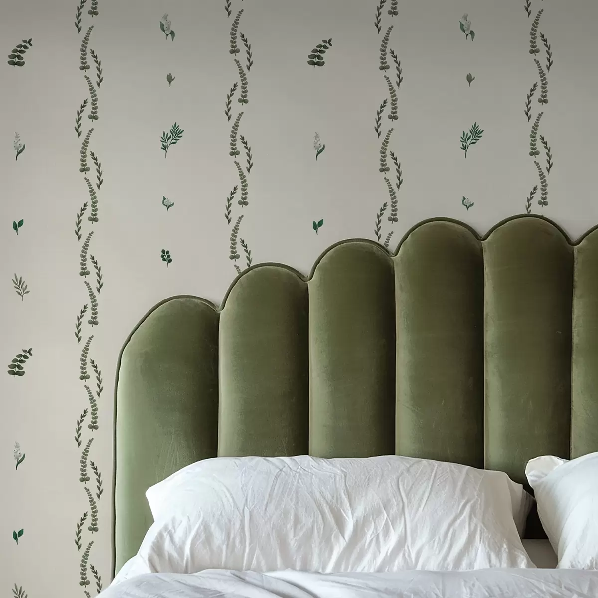 Tapety Rzadkie zielone pędy w pionowym rytmie, kremowe tło Nr. a00818