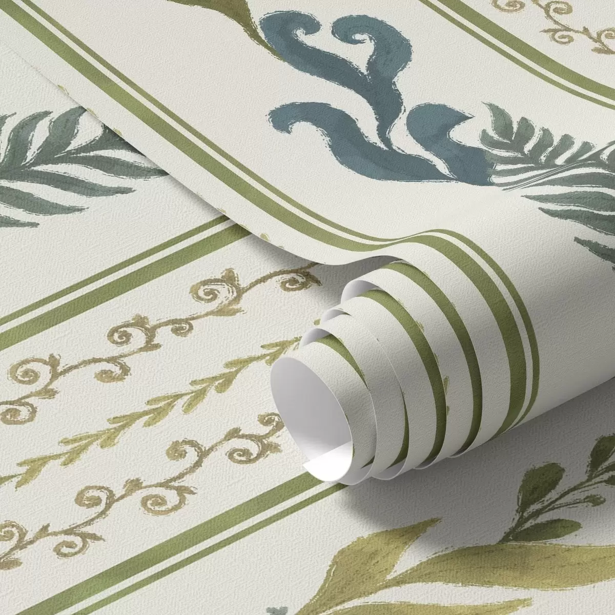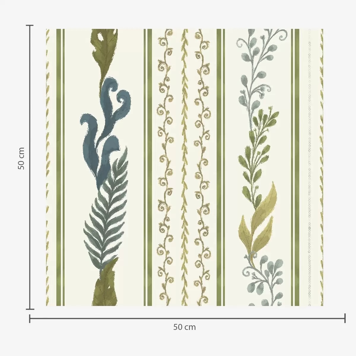 Tapety Paski z ornamentem w kształcie zwojów i dużymi gałęziami w kolorze zielonym Nr. a00823