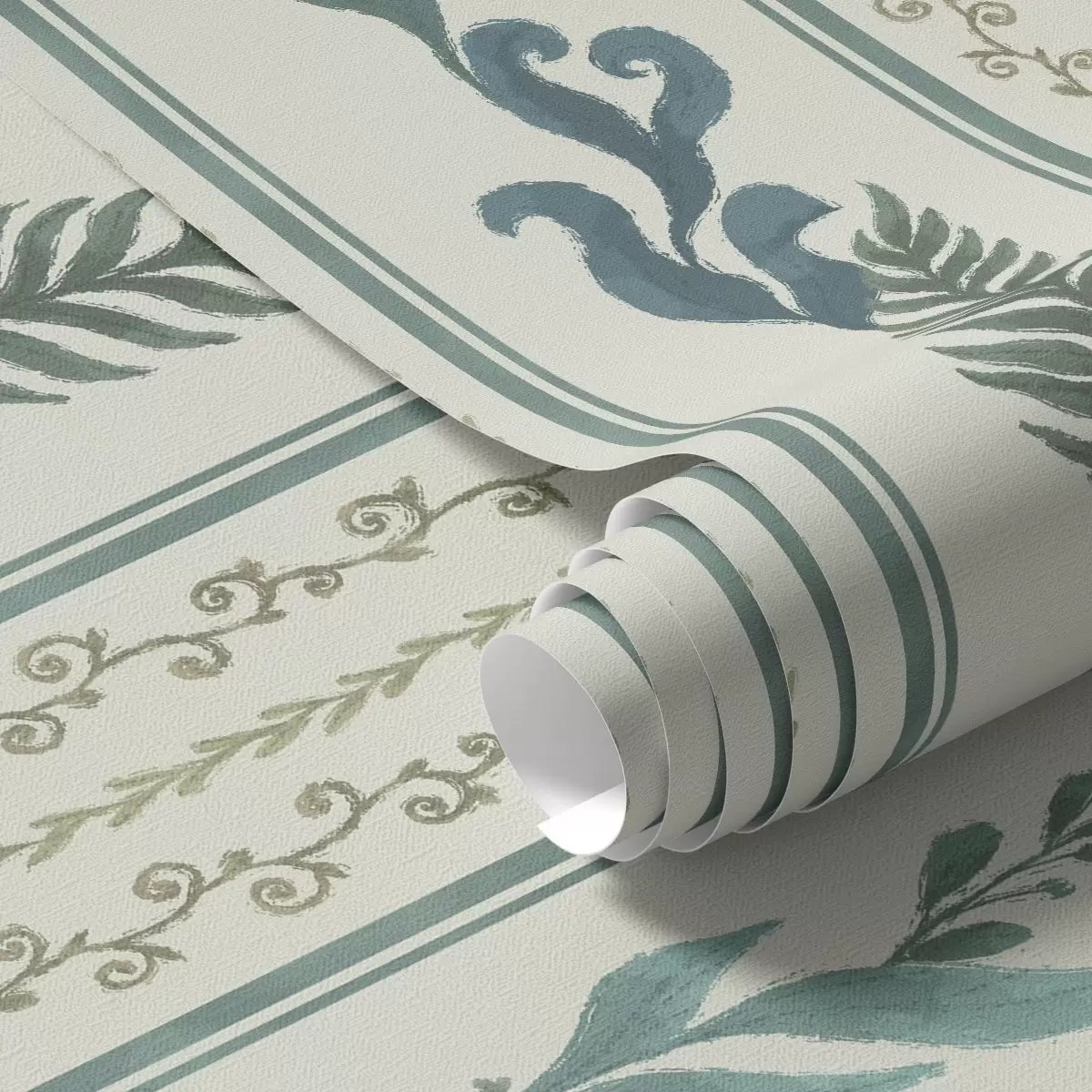 Tapety Paski z gałązkami i lokami na ciepłym mlecznym tle Nr. a00823v2