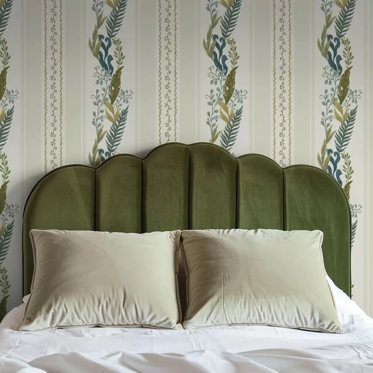 Tapety Szerokie paski z malarskimi gałęziami w odcieniach niebiesko-oliwkowych Nr. a00825